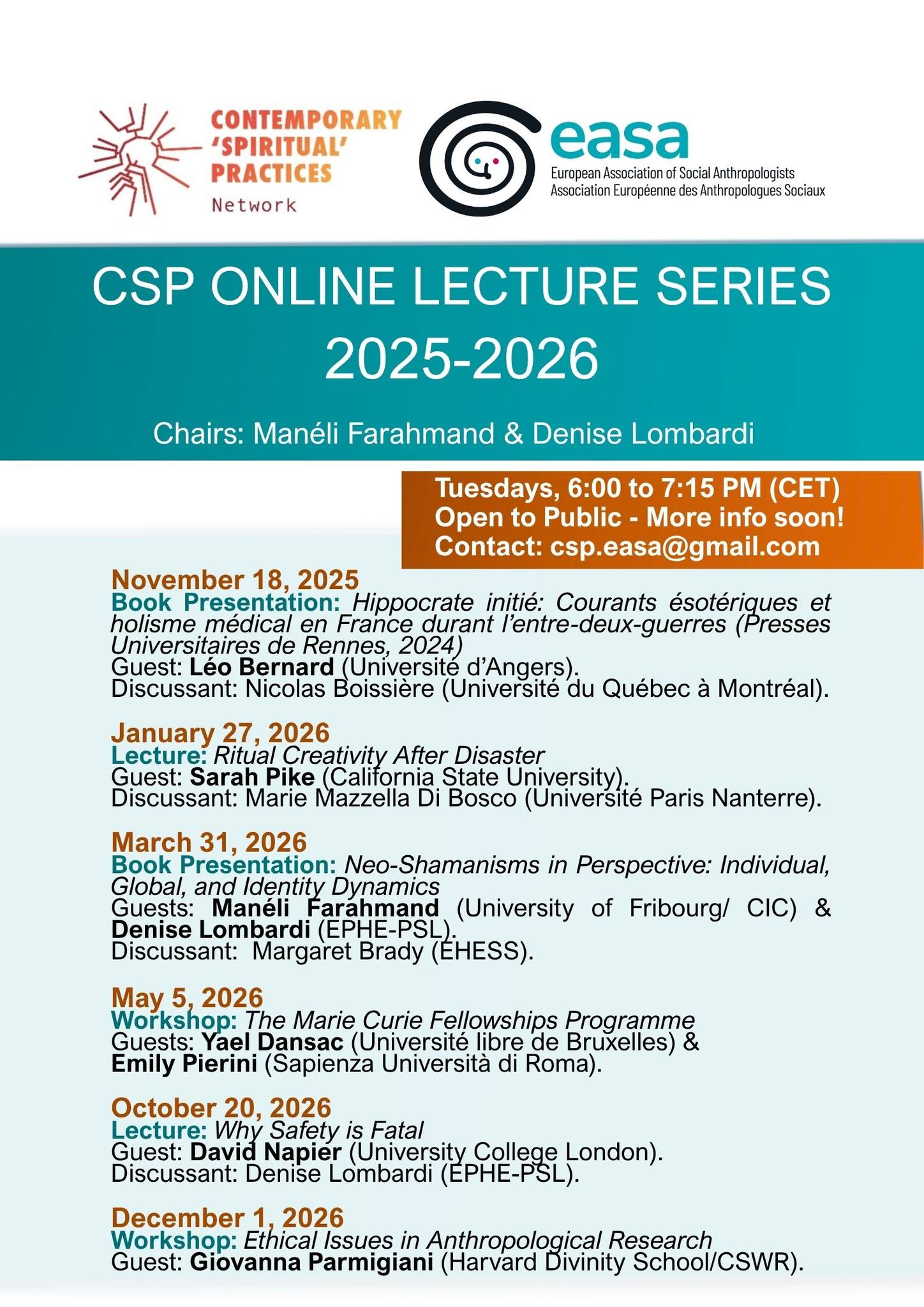 Denise Lombardi – programme annuel du séminaire « Contemporary ‘spiritual’ practices »