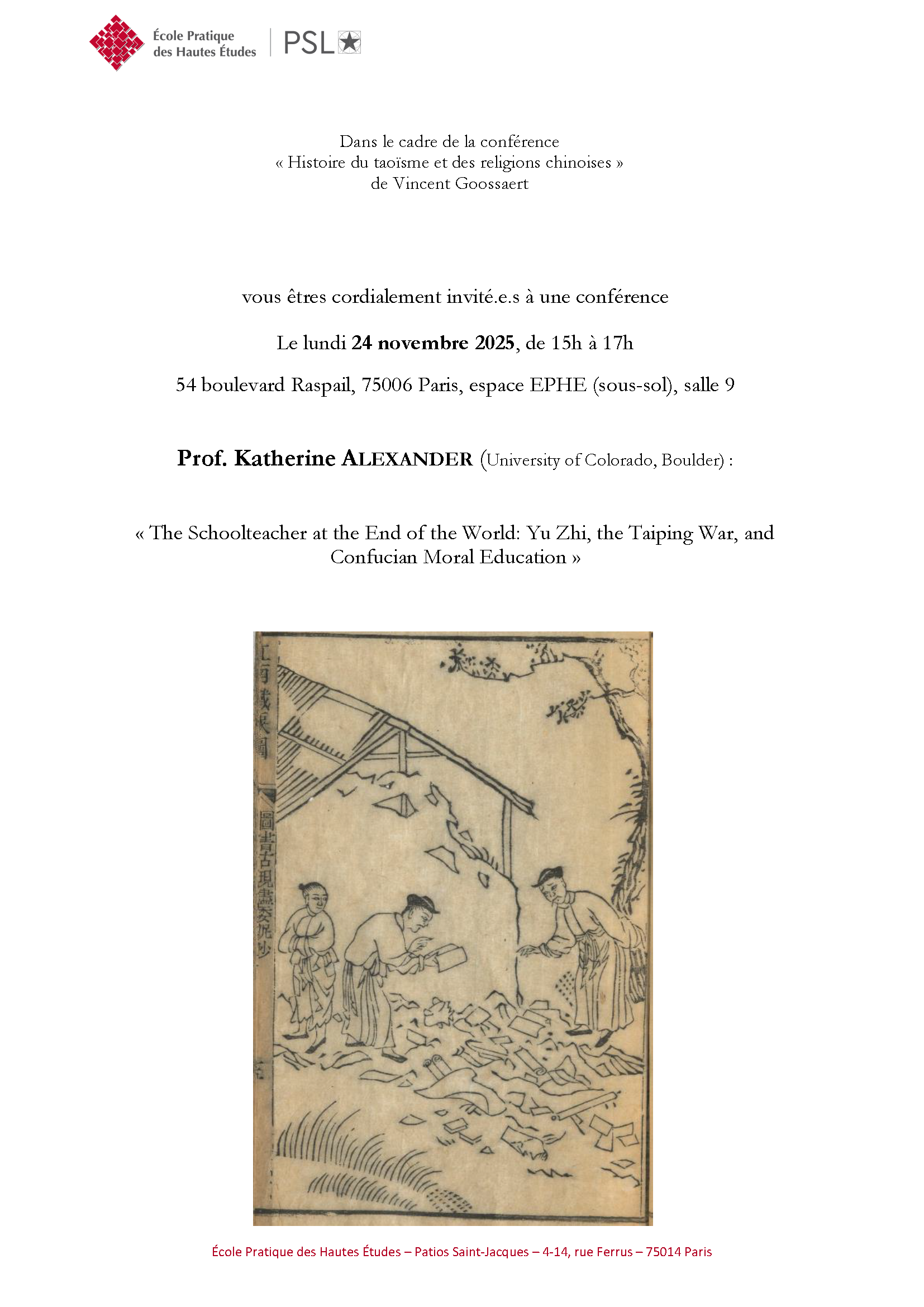 Katherine Alexander – « The Schoolteacher at the End of the World: Yu Zhi, the Taiping War, and Confucian Moral Education »